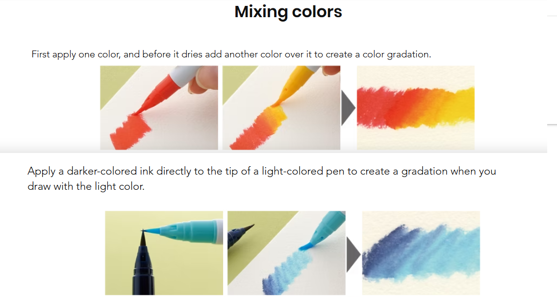كما يمكنك ايضا دمج الالوان معا وعمل تدرج بين لونين مختلفين اذ تمتزج معا بسهولة